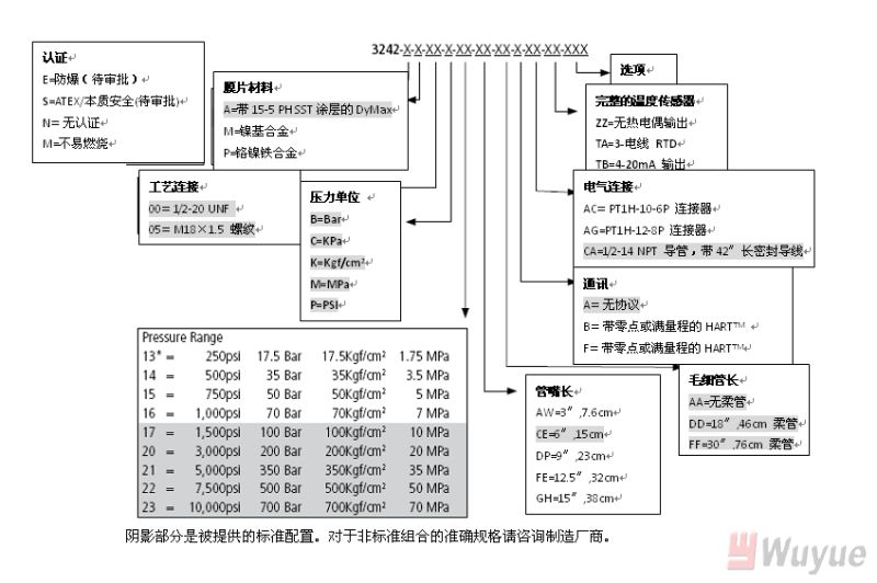 輸出,模擬:4-20mA(標準壓力,溫度可選) 輸出,數(shù)字:HART 綜合精度(錯誤)(20-100%滿量程): ±0.25%滿量程(3M和3M以上) ±0.35%滿量程(1.5M和1.5以下) 溫度漂移(77-572℉,25-300℃): 0.001%滿量程/℉,最大(0.001%滿量程/℃,最大) 重復性:±0.1%滿量程 爆破額定壓力:2X滿量程 超壓 額定:1.5X滿量程 量程:1,500至10,000psi 可調(diào)范圍:6:1調(diào)節(jié)比,向下 負載電阻:250歐姆@18Vdc;500歐姆@23Vdc |